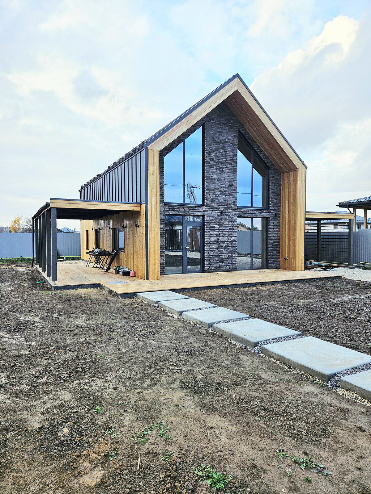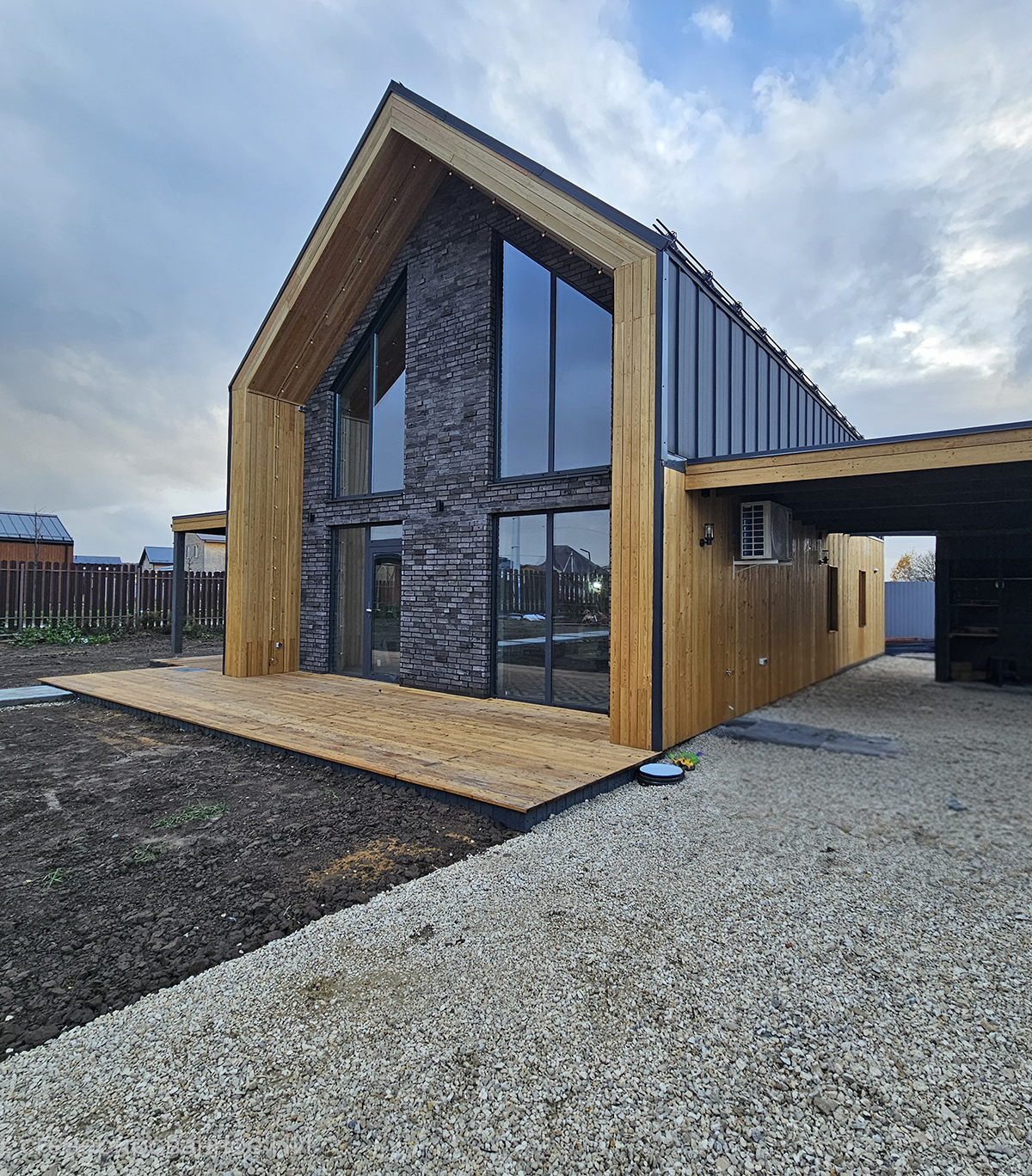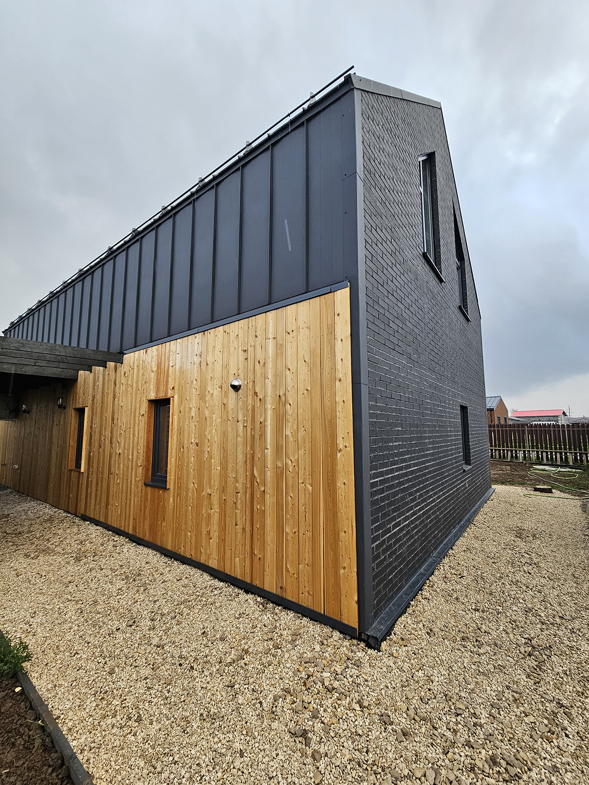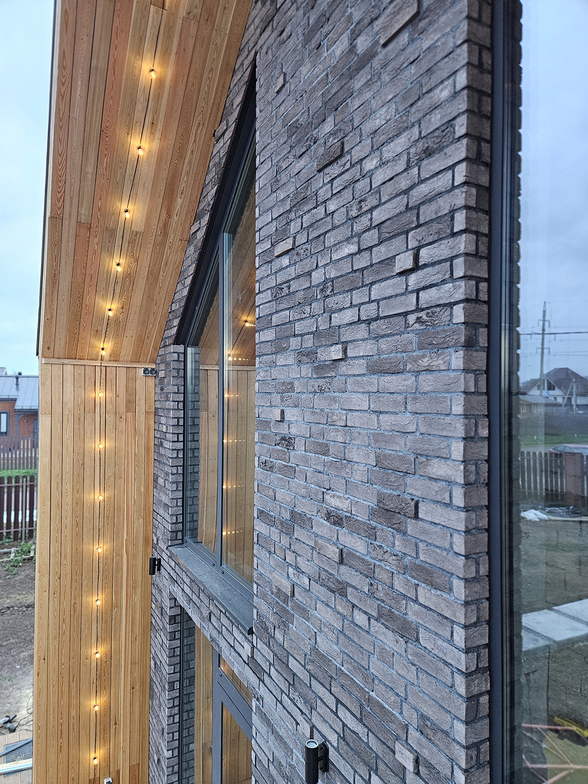 Газобетон d400, стеклопакеты Rehau, кровля кликфальц, кирпич ручной формовки, клинкер
